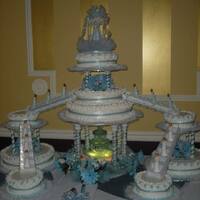 Every little detail takes time and the more complex the cake design the higher the price. We quote by the number of servings and design. Opening at 900 AM tomorrow.